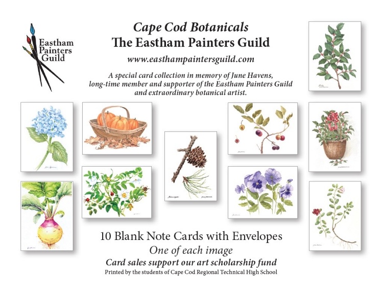 A Cape Cod Christmas is the newest addition to our note card sets. There are ten different cards, each with a different painting by an Eastham Painters Guild member. You can see the entire set here.