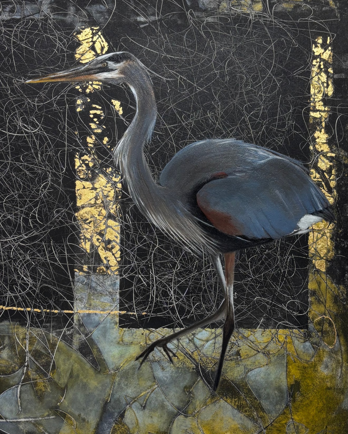by Karleen Loughran, Monoprint, Acrylic & Goldleaf, 18″x 20″, $650
