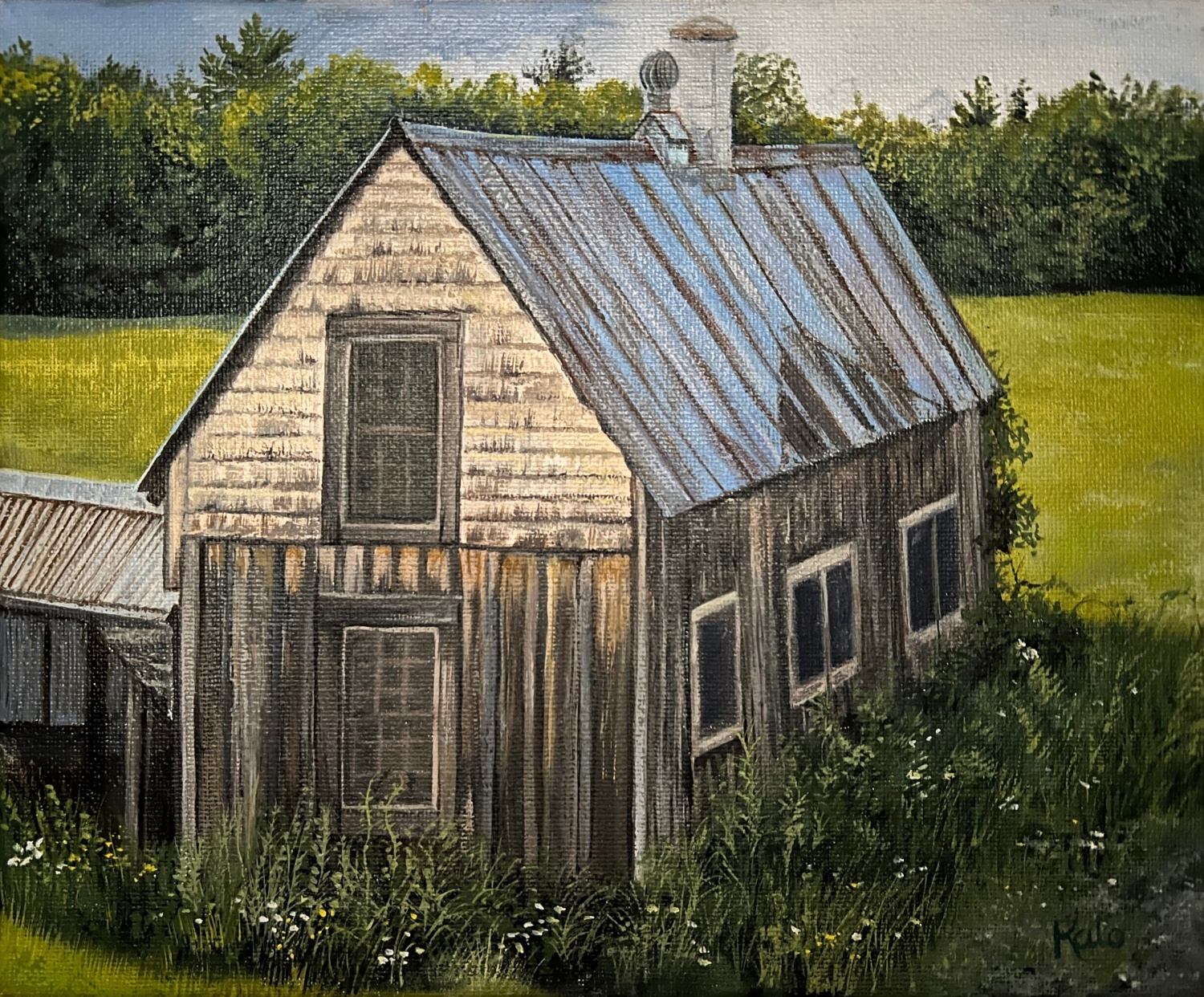 Kalo started painting 50 years ago, but life often pulls us in many directions, and she is no exception. Her father was a commercial artist for the Borden Company, and as a child she watched him create signs, labels and logos. The paints were accessible and she experimented with them often.