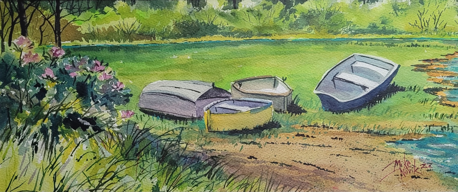 As a farm boy living in Southeastern Pennsylvania, Mike enjoyed observing nature all around him as he explored the countryside. His appreciation for landscape painting began way back then!Painting watercolors is Mike’s medium of choice. It is like a wild animal. It can be tamed but always is mysterious. He is constantly enjoying new techniques he invents, usually by accident.