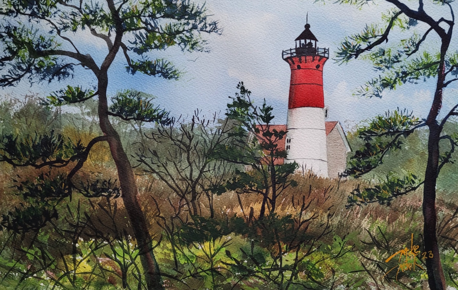 Mike is now retired and living on Cape Cod. Plein air painting is his passion. Mike paints almost daily, weather permitting. You might find him painting at an iconic place or a mundane view of a marsh, trees, or simply a street or beach scene.